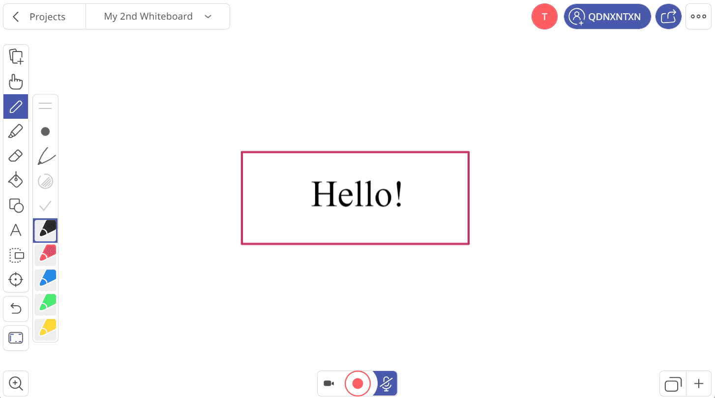 Its Whiteboard is just like Jamboard’s — it’s got all the basic drawing tools such as pens, text, sticky notes, and shapes. And you can enable or disable collaboration tools for your participants.
