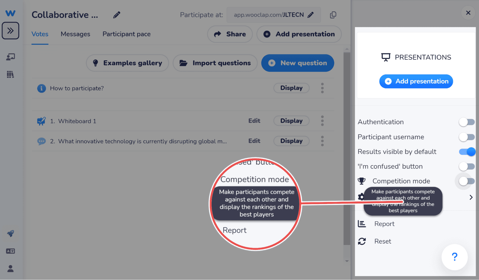 Unlike Jamboard's basic offerings, Wooclap allows you to create structured collaborative events with a workflow tailored to your discussions.